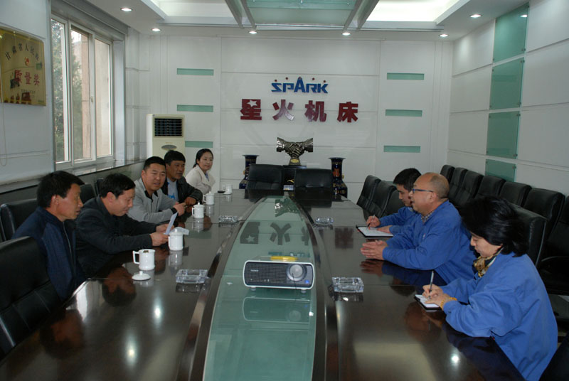 座談結(jié)束后,年莊村包村干部、秦亭鎮(zhèn)紀委書記高世紅、駐村第一書記李文軍、村黨支部書記孟克院、村委會主任李應(yīng)祥、駐村干部安圓圓等人,在星火機床集團公司領(lǐng)導陪同下深入生產(chǎn)現(xiàn)場參觀了公司產(chǎn)品。