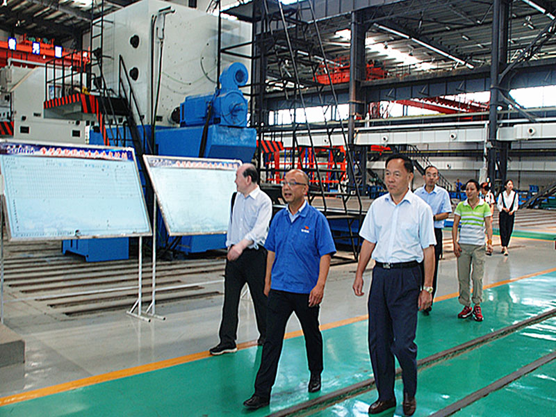 在蔣俊的陪同下,李國鋒、陳士發(fā)一行參觀了大型裝配分廠、數(shù)控精密分廠和大件加工分廠、噴包分廠生產(chǎn)現(xiàn)場。參觀過程中,蔣俊向客人介紹了企業(yè)發(fā)展歷程、目前經(jīng)營狀況、工業(yè)園建設情況及公司在行業(yè)的地位、產(chǎn)品研發(fā)和市場銷售情況。