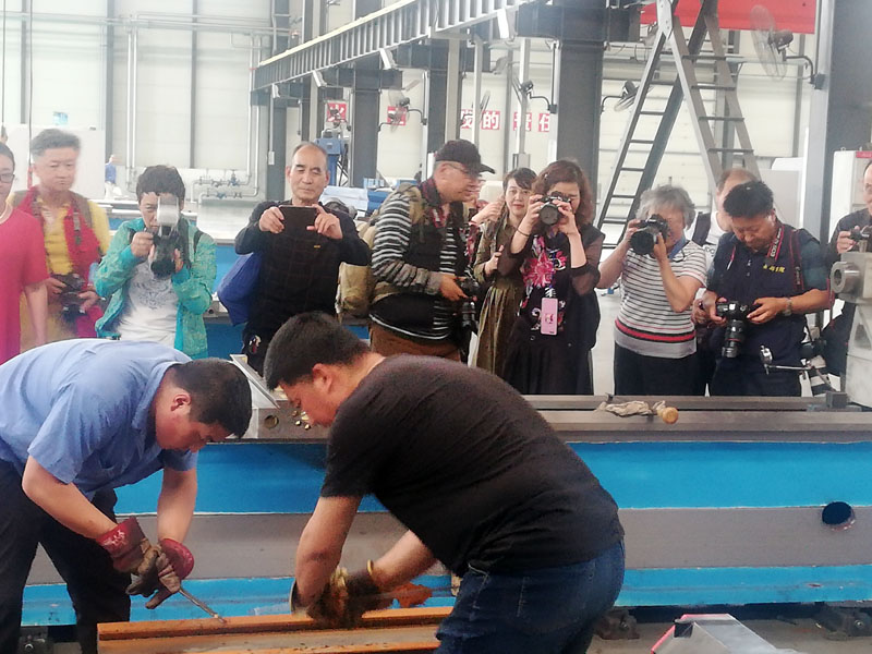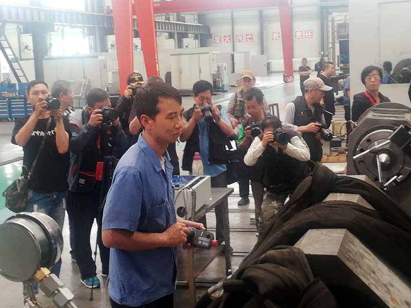 當(dāng)天下午,50多名攝影愛好者一進(jìn)入星火機(jī)床公司工業(yè)園裝配現(xiàn)場,便四處散開,各自尋找自己的拍攝對象。長槍短炮一齊上陣,記錄他們認(rèn)為有價(jià)值的瞬間,攝影愛好者喜歡以藝術(shù)攝影的視角觀察日常工作生活,特別喜歡通過圓孔、圓洞等表現(xiàn)拍攝對象。在數(shù)控精密分廠現(xiàn)場,他們?yōu)榱送ㄟ^管子車主軸孔拍攝,幾十人排隊(duì)等候,現(xiàn)場一名員工為他們做了近30分鐘的“模特”,配合他們工作。同時(shí),有許多攝影愛好甚至通過龍門吊的吊鉤、零件吊環(huán)進(jìn)行拍攝,力求以獨(dú)特的視角,反映現(xiàn)實(shí)生活、反映星火風(fēng)采。