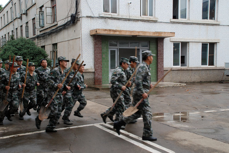 星火機(jī)床公司民兵應(yīng)急營防汛抗洪連3排在公司大門口開展了防汛抗洪應(yīng)急演練。公司領(lǐng)導(dǎo)、防汛領(lǐng)導(dǎo)小組成員趙錦銘、鞠家兵、劉生玉觀看了演練。