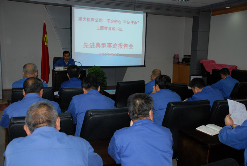 按照《中共天水市委關(guān)于開展“不忘初心 牢記使命”主題教育的實(shí)施方案》要求,星火機(jī)床公司自9月16日開始的為期一周的主題教育讀書班各項(xiàng)學(xué)習(xí)活動(dòng)正在如火如荼的開展。按照學(xué)習(xí)計(jì)劃,每天上午、下午,星火機(jī)床公司 “不忘初心 牢記使命”主題教育讀書班定時(shí)開展形式多樣的學(xué)習(xí)活動(dòng)。自9月17日、9月18日組織讀書班成員觀看警示教育片、《建國(guó)大業(yè)》革命傳統(tǒng)教育專題片后,9月19日上午,星火機(jī)床公司“不忘初心 牢記使命”主題教育讀書班在大會(huì)議室舉辦了先進(jìn)典型事跡報(bào)告會(huì)。