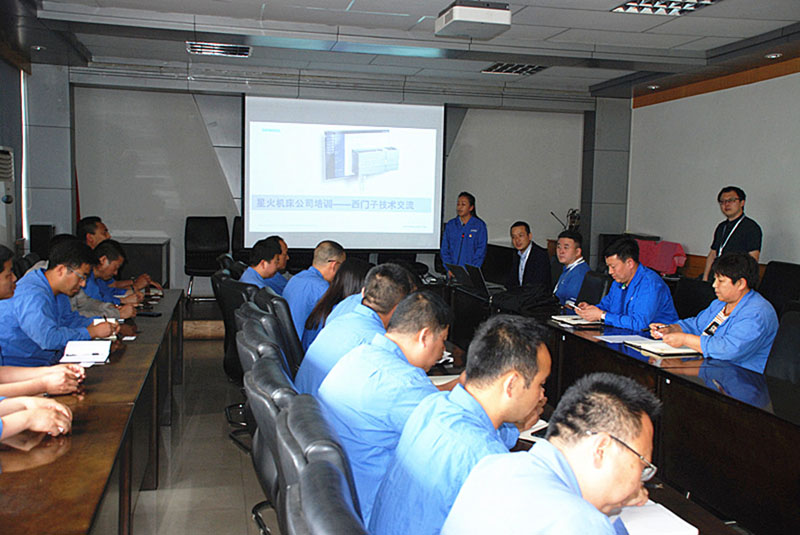 為提升專業(yè)技術(shù)人員專業(yè)知識技能,熟練使用西門子數(shù)控系統(tǒng),進一步了解西門子變頻器及低壓控制類電氣元件的性能,提高工作效率。5月19日下午,星火機床公司邀請西門子公司專業(yè)技術(shù)團隊,來公司舉辦西門子數(shù)控系統(tǒng)知識講座。星火機床集團公司總經(jīng)理、星火機床研究院院長劉勝,星火機床研究院常務(wù)副院長展海瑜及設(shè)計工藝、電氣調(diào)試、售后服務(wù),各單位電氣調(diào)試維修人員20多人參加培訓(xùn)。
