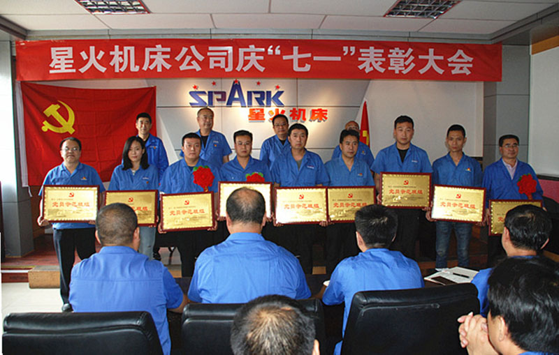 7月1日,星火機(jī)床集團(tuán)公司召開慶“七一”表彰大會,隆重紀(jì)念中國共產(chǎn)黨成立99周年。黨委書記、集團(tuán)公司董事長蔣保權(quán),黨委委員、集團(tuán)公司副總經(jīng)理趙錦銘、高發(fā)巨出席會議。