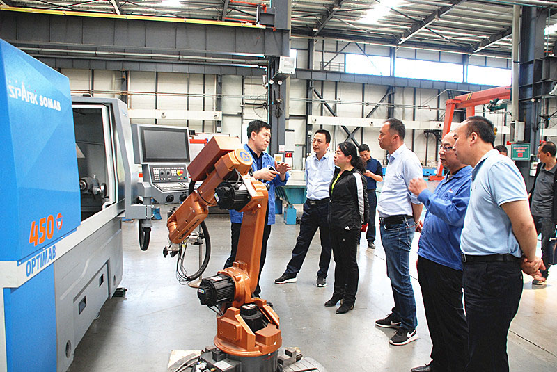 王雪芹一行來(lái)到機(jī)械裝備公司生產(chǎn)現(xiàn)場(chǎng),參觀了不同系列的機(jī)床產(chǎn)品。劉勝匯報(bào)了企業(yè)推進(jìn)“三化”改造工作情況,并對(duì)公司各類(lèi)產(chǎn)品的用途、性能一一作了介紹。(康永明)