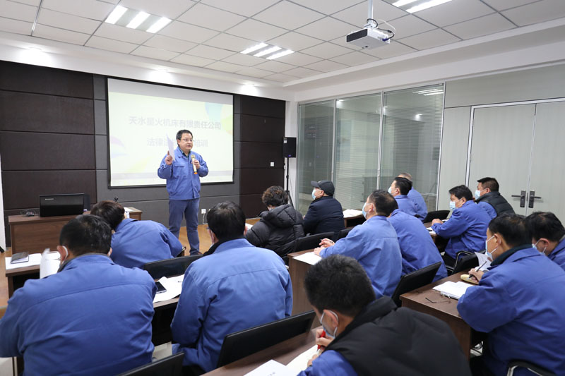 2月5日,星火機(jī)床公司邀請(qǐng)?zhí)焖兄屑?jí)人法院民二庭庭長(zhǎng)李蘭、蘭州合睿法律事務(wù)所律師魯和平、張文強(qiáng)舉辦法律法規(guī)知識(shí)培訓(xùn)。此次培訓(xùn)旨在增強(qiáng)員工法律意識(shí),掌握與工作相關(guān)的法律知識(shí),提高風(fēng)險(xiǎn)防范技能,減少因法律知識(shí)欠缺、法律意識(shí)淡薄等問(wèn)題引發(fā)的法律糾紛,維護(hù)公司合法權(quán)益,保證企業(yè)健康有序發(fā)展。