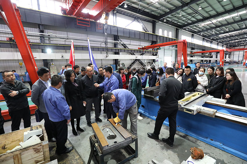 劉勝、趙錦銘等陪同參觀了公司工業(yè)園現(xiàn)代化新廠區(qū)及各種精密、數(shù)控、重型車床產(chǎn)品,介紹了企業(yè)目前生產(chǎn)經(jīng)營狀況和發(fā)展前景。交流學習團的許多人首次看到天水當?shù)仄髽I(yè)生產(chǎn)的重型車床、精密車床紛紛表示完全超乎想象,連聲贊嘆。