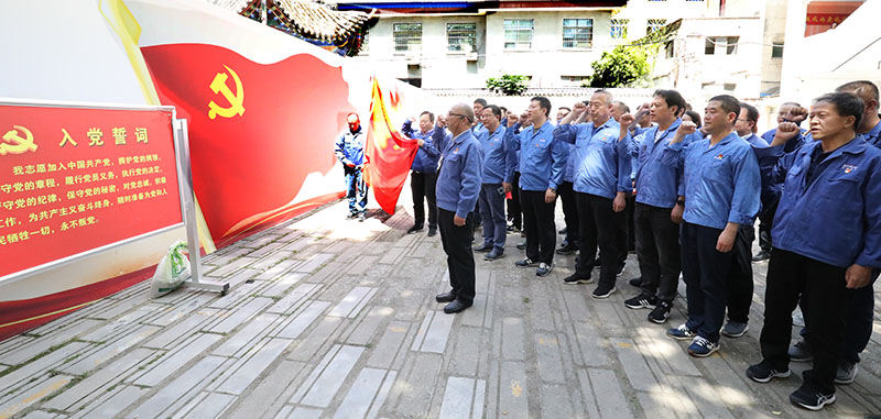 在徽成兩康戰(zhàn)役紀(jì)念館,星火機(jī)床集團(tuán)及公司領(lǐng)導(dǎo)和黨員干部面對(duì)鮮紅黨旗,整齊列隊(duì),在黨委副書(shū)記蔣俊同志的帶領(lǐng)下重溫入黨誓詞。隨后,紀(jì)念館講解員講解了1936年紅二方面軍在徽(縣)成(縣)兩(當(dāng))康(縣)戰(zhàn)役中,毛澤東安排有關(guān)兩當(dāng)、徽縣工作的書(shū)信,紅二方面軍總指揮賀龍,政治委員任弼時(shí)、副政治委員關(guān)向應(yīng)等指揮戰(zhàn)斗的情景,參觀了賀龍贈(zèng)送給當(dāng)?shù)卣拇笞?,賀龍鬧革命的兩把菜刀(復(fù)制品)等革命文物、歷史資料照片。同時(shí)了解了當(dāng)年徽縣底下黨組織開(kāi)展斗爭(zhēng)的歷史。