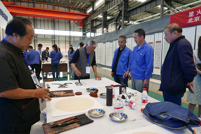 在中國共產(chǎn)黨建黨一百周年來臨之際,為推進(jìn)企業(yè)“學(xué)黨史、強黨性、促發(fā)展”活動深入開展,帶動廣大黨員和職工群眾勇躍參加建黨百年慶?;顒?,以多種形式歌頌黨的豐功佳績,表達(dá)對黨的崇敬和熱愛。5月12日,星火機床集團公司隆重舉辦慶祝中國共產(chǎn)黨建黨100周年黨史學(xué)習(xí)教育“黨在我心中”職工書畫作品展,并邀請北京當(dāng)代翰墨文化藝術(shù)院甘肅分院有關(guān)領(lǐng)導(dǎo)和老師現(xiàn)場創(chuàng)作書畫,為公司各級勞模送字、送畫,活動現(xiàn)場熱烈而有序。