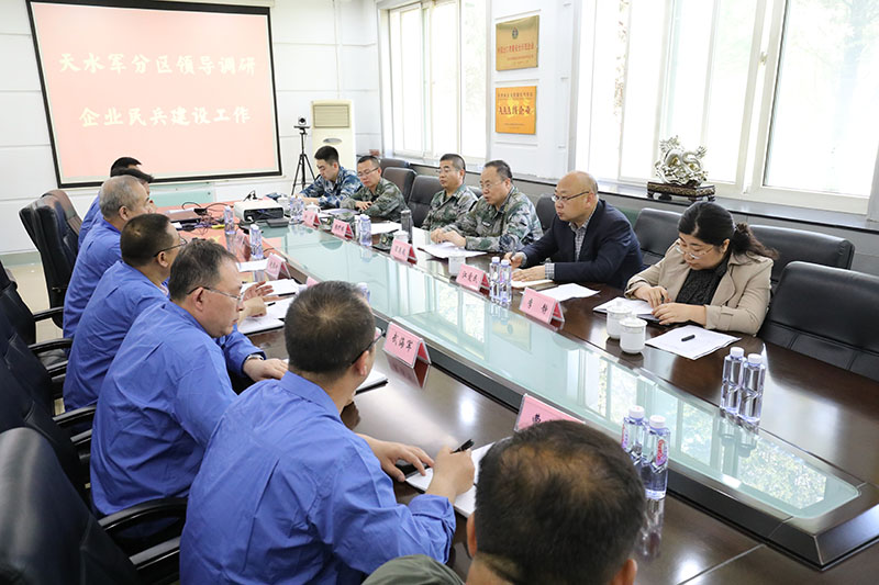 宋英武一行首先深入公司本部主要生產(chǎn)現(xiàn)場(chǎng)和民兵預(yù)備役連部參觀。參觀過(guò)程中,趙錦銘等介紹了企業(yè)基本情況。隨后,雙方領(lǐng)導(dǎo)在小會(huì)議室座談。座談中,宋英武首先通報(bào)了調(diào)研的內(nèi)容和目的。胡慶峰匯報(bào)了公司民兵建設(shè)有關(guān)情況,反映存在的問(wèn)題。趙錦銘簡(jiǎn)要介紹了公司產(chǎn)品研發(fā)、技術(shù)力量、行業(yè)地位。重點(diǎn)介紹了公司最近兩年研發(fā)的新產(chǎn)品的特點(diǎn)和市場(chǎng)前景,表示公司雖然生產(chǎn)壓力大,但絕不影響民兵整組及訓(xùn)練,保證按要求落實(shí)民兵建設(shè)有關(guān)工作。