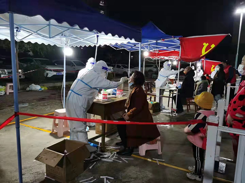 附件公司黨員職工組成抗疫突擊隊(duì),為“黃碼”人員進(jìn)行核酸檢測(cè)清掃環(huán)境、搭帳篷、擺桌子,保障照明,維持秩序。