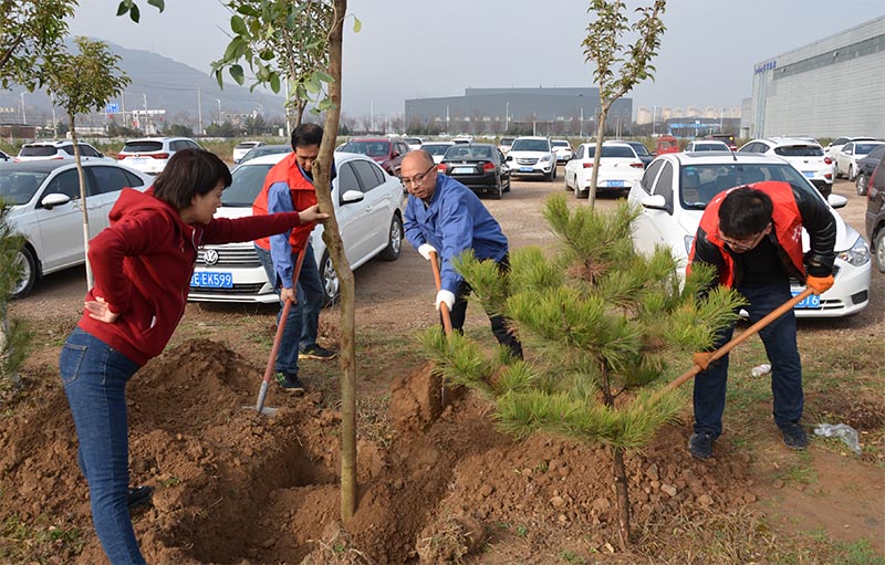 在“3.12”植樹節(jié)前后,星火機床公司組織鑄造、機械制造、機床裝備、機關(guān)、研銷、后勤等黨支部黨員干部職工70多人,開展了以“植樹播綠 美化環(huán)境”為主題的義務植樹活動。此次活動旨在增強企業(yè)員工的植綠護綠意識,引導大家做綠色家園的建設者、護衛(wèi)者。與往年不同的是,今年在兼顧觀賞性的同時,按照既“綠化”又“美化”的要求,物業(yè)公司特從陜西扶風苗木基地精挑細選了500株具有觀賞價值的紅葉李、大葉女貞樹種,為星火工業(yè)園區(qū)廠房周邊添植了新綠。