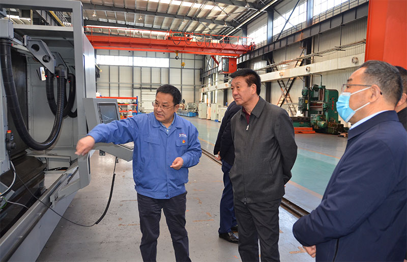 星火機床集團公司黨委書記、董事長蔣保權(quán),黨委副書記、副總經(jīng)理蔣俊分別向調(diào)研組匯報了生產(chǎn)經(jīng)營工作、目前市場形勢,陪同參觀了即將參展的新產(chǎn)品進展。