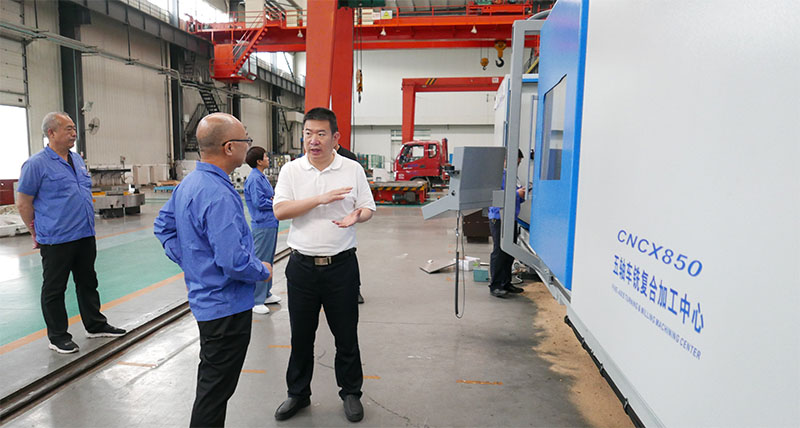 陳海龍一行參觀了公司研發(fā)生產(chǎn)的各類機床產(chǎn)品,認真聽取了集團公司黨委副書記、副總經(jīng)理蔣俊關(guān)于企業(yè)發(fā)展歷程、技術(shù)研發(fā)能力、生產(chǎn)經(jīng)營情況、市場前景、項目建設(shè)進展及公司“十四五”發(fā)展規(guī)劃等情況介紹,詳細詢問了企業(yè)上半年生產(chǎn)經(jīng)營工作,特別是企業(yè)目前存在的主要困難和問題。