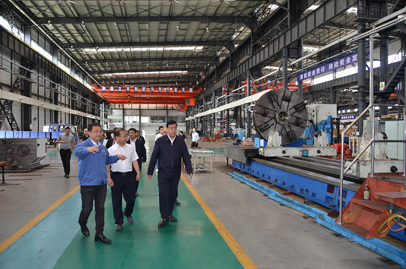 張軍禎聽取星火機(jī)床公司目前生產(chǎn)運(yùn)行、今年經(jīng)濟(jì)指標(biāo)、產(chǎn)品訂貨等情況介紹后,參觀了精密數(shù)控機(jī)床和大、重型機(jī)床產(chǎn)品。在參觀星火機(jī)床公司研發(fā)生產(chǎn)的數(shù)控重型臥式車鏜床時(shí)感嘆到:“這可是真正的大國(guó)重器?。 ?