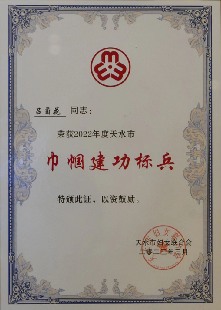 星火機(jī)床公司一線女職工呂菊花榮獲天水市“巾幗建功標(biāo)兵”榮譽(yù)稱(chēng)號(hào),在3月8日天水市紀(jì)念“三八”國(guó)際勞動(dòng)?jì)D女節(jié)113周年暨“致敬了不起的她”表彰大會(huì)上受到表彰。