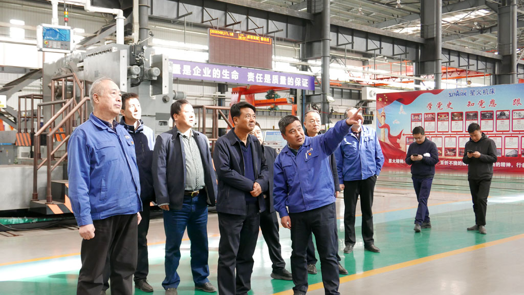 在星火公司裝配生產(chǎn)現(xiàn)場,趙錦銘向趙貴平一行詳細(xì)介紹了企業(yè)生產(chǎn)經(jīng)營、產(chǎn)品研發(fā)、營商環(huán)境等情況,并陪同參觀了公司自主研發(fā)的各類大、重型數(shù)控機床產(chǎn)品和即將亮相北京國際機床展會的三臺展機。