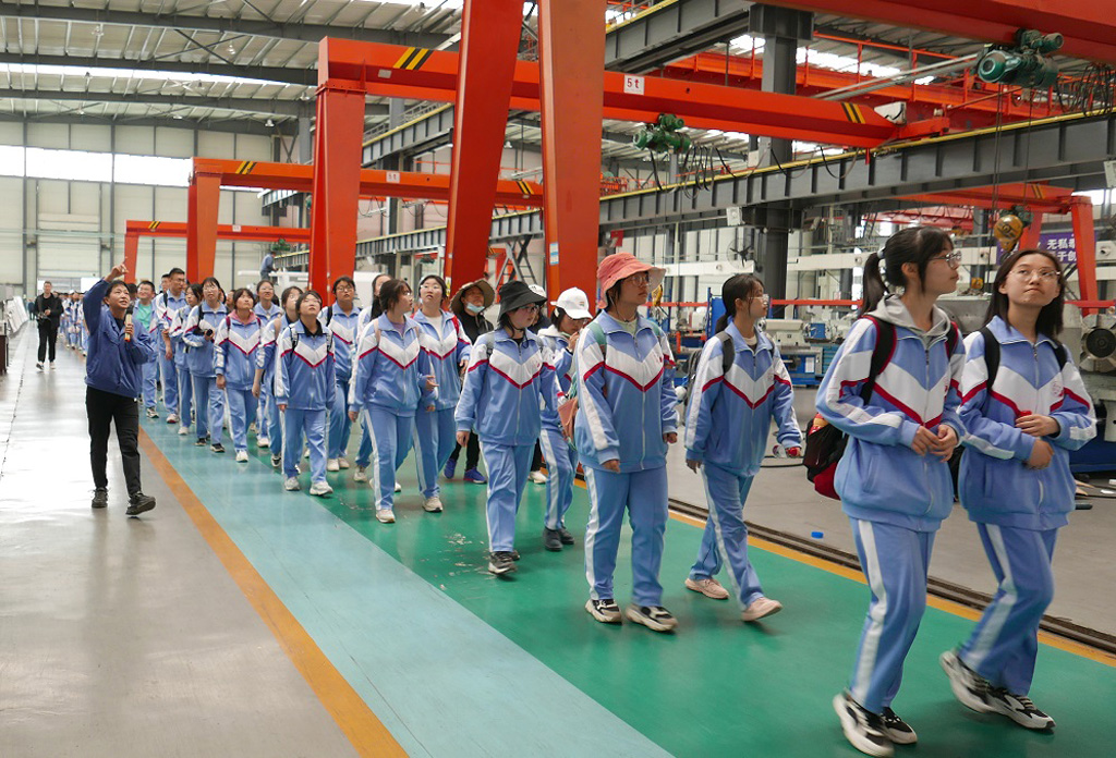 參觀生產現(xiàn)場時,蔡建欣向老師和同學們介紹了正在生產的各種主要產品的功能、用途。在公司展廳,她向老師和同學們介紹了公司獲得的各種榮譽、發(fā)展歷程、重大事件和產品結構變化,以及公司勞模、工匠等先進人物。通過聽介紹、看實物,同學們不停地發(fā)出感嘆和震驚,對星火公司及機床有了更深的認識和了解。