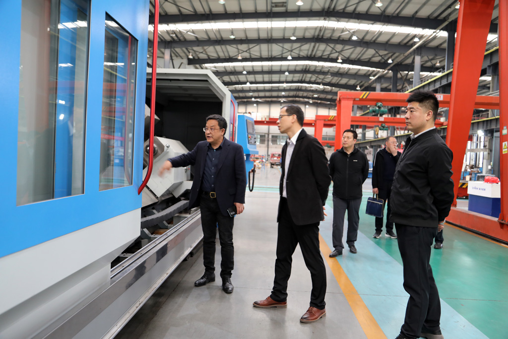 蔣保權向李強一行詳細介紹了企業(yè)的歷史沿革、生產經營狀況,以及科技創(chuàng)新、項目建設等情況。他結合國內外環(huán)境分析了機床行業(yè)未來發(fā)展趨勢,重點介紹了星火機床公司適應時代發(fā)展要求,研發(fā)生產的大型五軸聯(lián)動車銑復合加工中心、多軸數(shù)控纏繞設備等諸多處于行業(yè)領先地位的產品。他說,國家將“工業(yè)母機”定義為現(xiàn)代化體系的核心樞紐。星火機床將發(fā)揚“三線”企業(yè)的奉獻和拼搏精神,為用戶解難題,為大國鑄利器,在打破國外壟斷桎梏繼續(xù)努力。