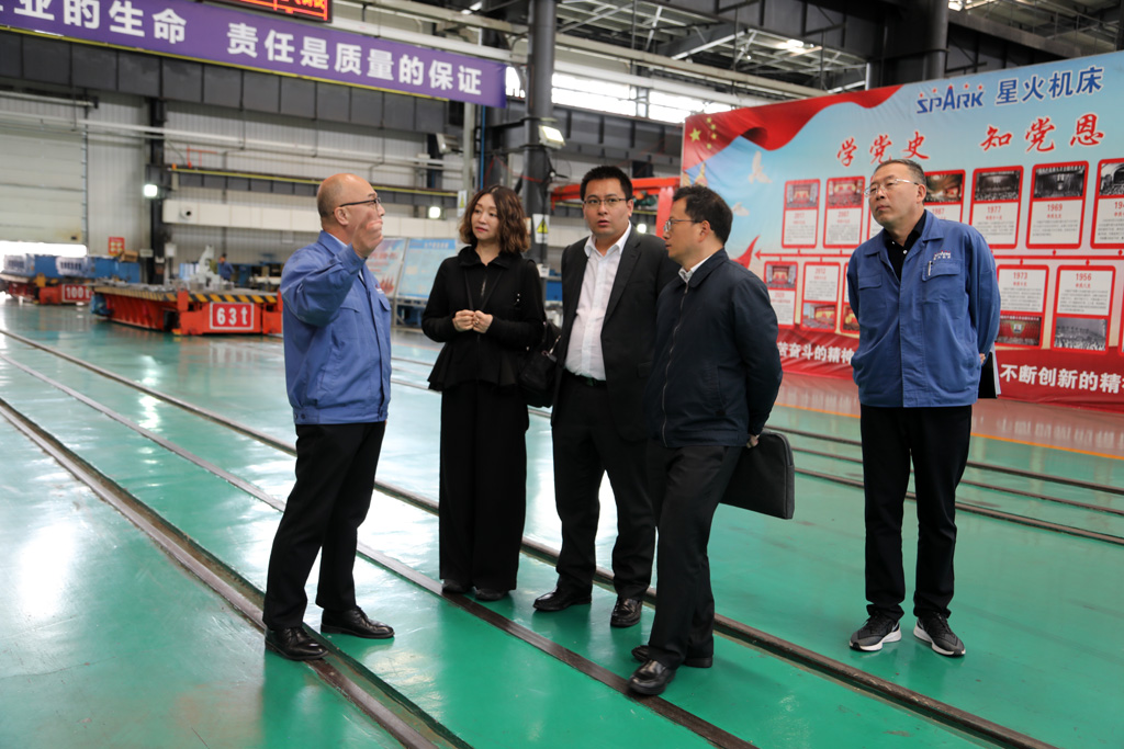 楊治國(guó)一行在星火機(jī)床集團(tuán)公司黨委副書(shū)記、副總經(jīng)理蔣俊,財(cái)務(wù)金融部部長(zhǎng)武海軍陪同下參觀了公司生產(chǎn)現(xiàn)場(chǎng)。蔣俊向楊治國(guó)一行介紹了公司的歷史沿革、當(dāng)前生產(chǎn)經(jīng)營(yíng)狀況,產(chǎn)品市場(chǎng)前景,以及公司已經(jīng)掌握的五軸聯(lián)動(dòng)數(shù)控機(jī)床、多軸聯(lián)動(dòng)數(shù)控纏繞機(jī)床等技術(shù)。