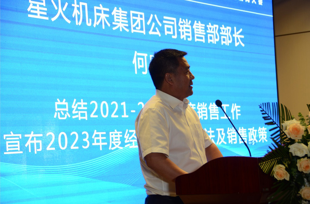 最后,星火機床集團公司銷售部部長何曉東對本屆經銷商獲獎情況作了說明,總結了2021——2022年的銷售工作,并宣布了2023年度經銷商獎勵辦法及銷售政策等。