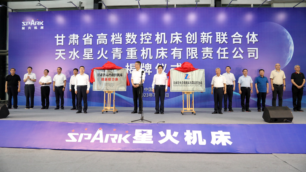 7月29 日,甘肅省高檔數(shù)控機(jī)床創(chuàng)新聯(lián)合體暨天水星火青重機(jī)床有限責(zé)任公司揭牌儀式在星火機(jī)床公司隆重舉行。天水市市委書記馮文戈,甘肅省科技廳副廳長(zhǎng)謝正團(tuán)為甘肅省高檔數(shù)控機(jī)床創(chuàng)新聯(lián)合體揭牌。天水市市委副書記、市長(zhǎng)王國(guó)先,甘肅省工信廳二級(jí)巡視員張忠善為天水星火青重機(jī)床有限責(zé)任公司揭牌。