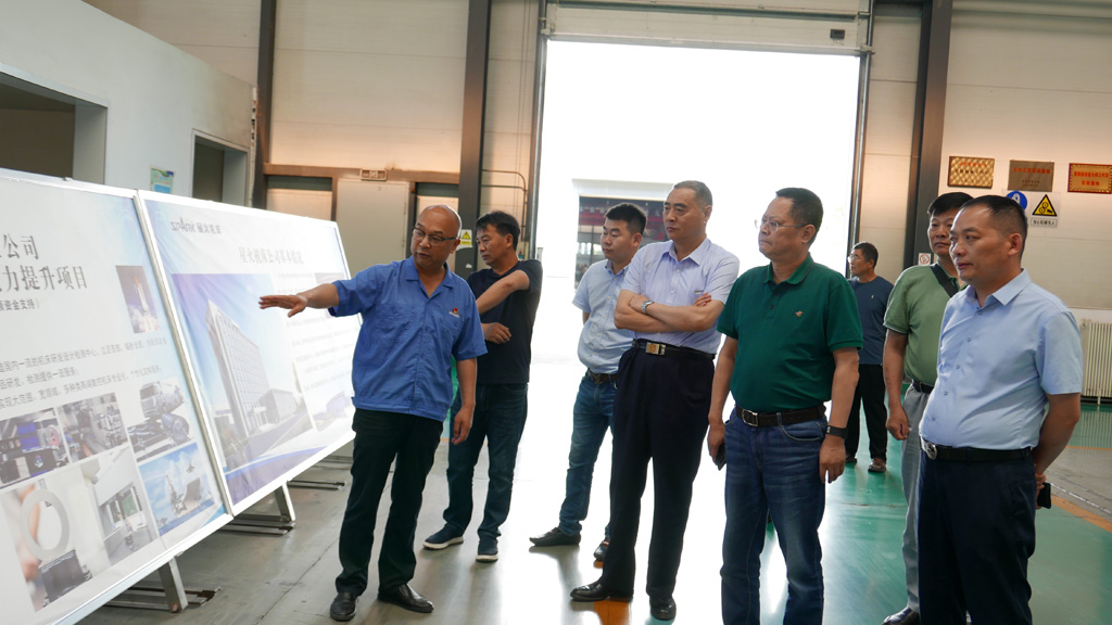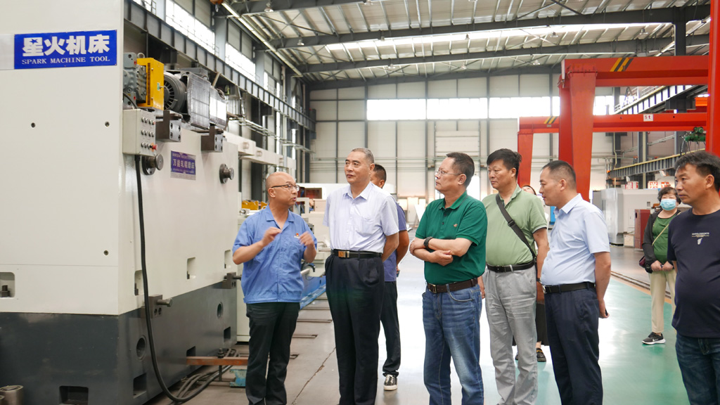 在星火機(jī)床公司裝配生產(chǎn)現(xiàn)場(chǎng),孫昌春一行聽取了集團(tuán)公司黨委副書記、副總經(jīng)理蔣俊關(guān)于公司生產(chǎn)經(jīng)營(yíng)、產(chǎn)品研發(fā)、科技創(chuàng)新、項(xiàng)目建設(shè)及未來發(fā)展規(guī)劃等情況介紹,參觀了公司研發(fā)生產(chǎn)的高端數(shù)控纏繞機(jī)床、五軸聯(lián)動(dòng)機(jī)床、數(shù)控斜床身機(jī)床等產(chǎn)品,詳細(xì)了解了各種產(chǎn)品的應(yīng)用領(lǐng)域及性能特點(diǎn)。