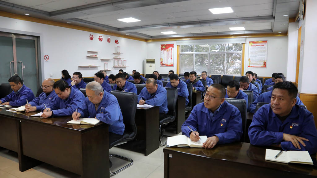 黨委書記、星火機(jī)床集團(tuán)公司董事長蔣保權(quán)主持會議。公司領(lǐng)導(dǎo)班子成員、中層干部、黨支部書記、分會主席、職工代表40余人參加。