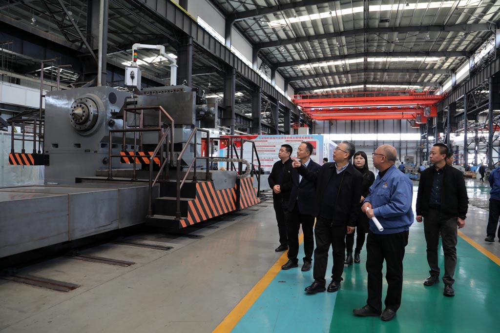 在星火機床公司工業(yè)園裝配及青重公司生產(chǎn)現(xiàn)場,蔣俊向李長迅一行詳細介紹了企業(yè)的生產(chǎn)經(jīng)營、產(chǎn)品研發(fā)、技術創(chuàng)新以及人才培養(yǎng)等情況,以及五軸聯(lián)動車銑復合加工中心、長軸機床、車輪車床等產(chǎn)品的性能、用途和市場前景等。