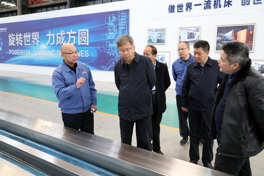 蔣俊、展海瑜陪同李斌一行首先深入工業(yè)園裝配現(xiàn)場(chǎng),參觀了星火機(jī)床公司研發(fā)生產(chǎn)的大型數(shù)控機(jī)床、重型機(jī)床及星火青重公司生產(chǎn)的車輪車床等產(chǎn)品,介紹了各種機(jī)床產(chǎn)品的特點(diǎn)、用途和市場(chǎng)前景。隨后,前往加工車間參觀了公司主要生產(chǎn)設(shè)備。調(diào)研中,蔣俊匯報(bào)了企業(yè)近幾年的生產(chǎn)經(jīng)營(yíng)指標(biāo)、今年計(jì)劃、科技創(chuàng)新、改革改制和未來(lái)發(fā)展規(guī)劃等。