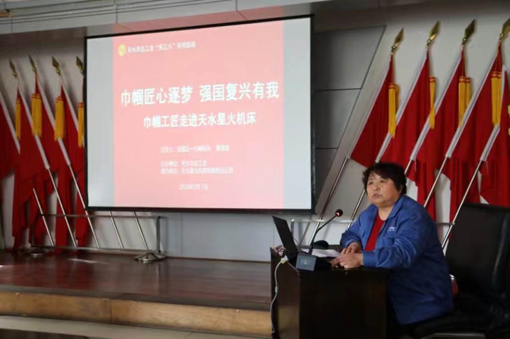 匯聚巾幗,匠心筑夢(mèng)。在“巾幗匠心逐夢(mèng),強(qiáng)國(guó)復(fù)興有我”為主題的宣講中,全國(guó)五一巾幗標(biāo)兵、省勞模、星火機(jī)床集團(tuán)公司機(jī)床研究院常務(wù)副院長(zhǎng)展海瑜結(jié)合自身工作經(jīng)歷,用最樸實(shí)的語(yǔ)言向大家講述了自己的成長(zhǎng)經(jīng)歷、人生感悟和拼搏奮進(jìn)的故事。她鼓勵(lì)大家在工作、生活中自省、自律、自強(qiáng),正確認(rèn)識(shí)自己、正確對(duì)待工作,處理好工作和生活、家庭和社會(huì)、個(gè)人與企業(yè)的關(guān)系,珍惜崗位,創(chuàng)先爭(zhēng)優(yōu),以昂揚(yáng)的斗志、飽滿的熱情在平凡崗位上唱響“婦女能頂半邊天”的時(shí)代最強(qiáng)音。