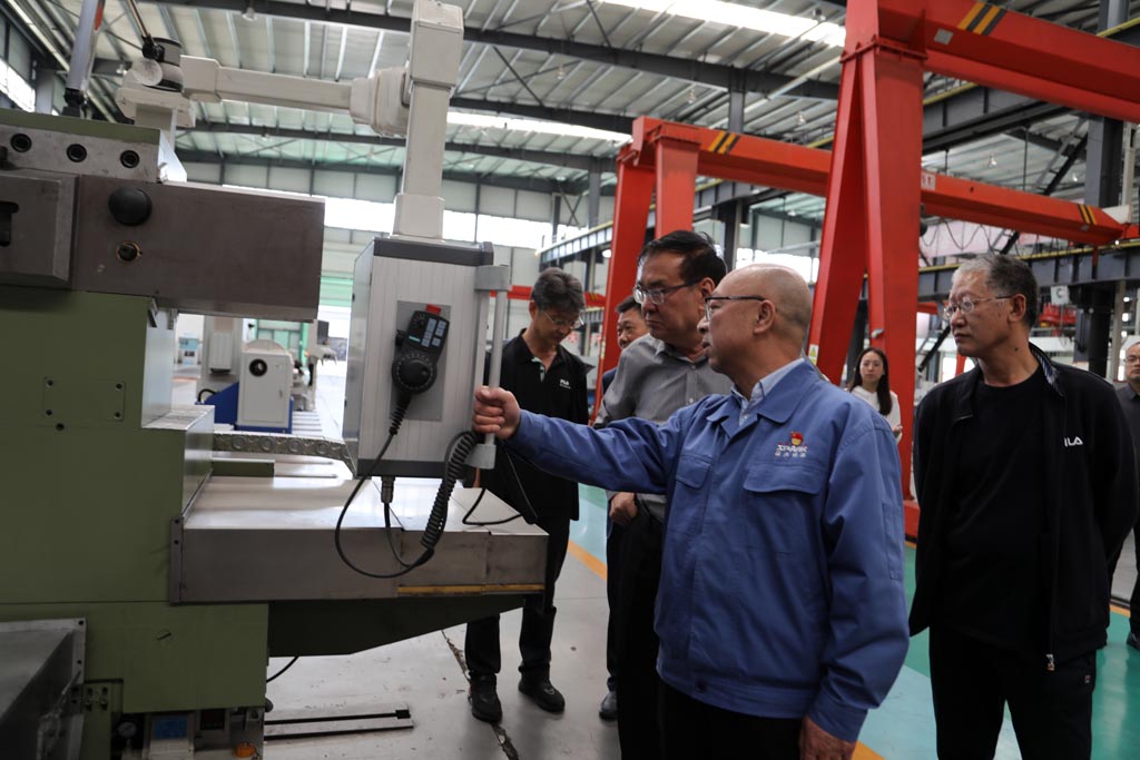 劉學(xué)軍一行在蔣俊陪同下先后參觀了工業(yè)園青重生產(chǎn)加工現(xiàn)場、機(jī)床裝配現(xiàn)場及噴漆車間,查看了機(jī)床加工及裝配工藝流程,參觀了公司自主研發(fā)生產(chǎn)并應(yīng)用于不同領(lǐng)域的各型機(jī)床產(chǎn)品。蔣俊向劉學(xué)軍一行詳細(xì)介紹了企業(yè)歷史沿革、發(fā)展歷程、科技創(chuàng)新、產(chǎn)品研發(fā)、項(xiàng)目建設(shè)、人才培養(yǎng)及公司發(fā)展規(guī)劃等情況。
