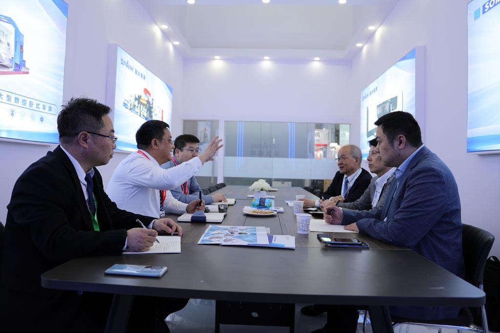 4月11日上午,日本株式會(huì)社(SKTD)社長(zhǎng)金田正宏先生在株式會(huì)社營(yíng)業(yè)部海外經(jīng)理唐飛的陪同下,來(lái)到星火機(jī)床展位參觀。黨委書(shū)記、星火機(jī)床集團(tuán)公司董事長(zhǎng)蔣保權(quán)在會(huì)客室會(huì)見(jiàn)了日本客商并與其座談。蔣保權(quán)詳細(xì)介紹了企業(yè)發(fā)展歷史及天水地區(qū)的人文環(huán)境。最后,雙方達(dá)成了合作意愿。
