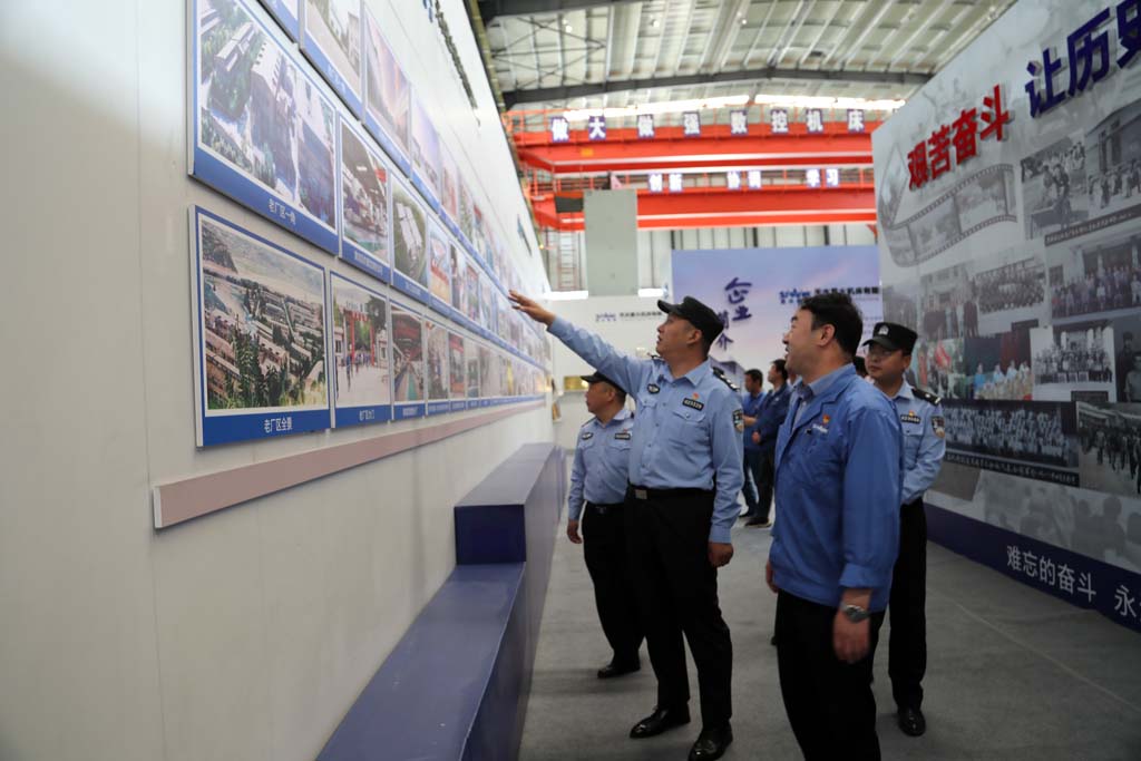 在黨旗的引領下,社棠派出所黨員秩序井然的參觀了星火機床公司展廳和生產現(xiàn)場。星火機床公司后勤黨支部書記張巨宏向姚杰一行詳細講解了企業(yè)歷史沿革、發(fā)展歷程、行業(yè)地位、企業(yè)文化、科技創(chuàng)新、產品研發(fā)、企業(yè)改制等內容。在紅山公司生產現(xiàn)場,紅山公司總經理張新平向姚杰一行介紹了紅山公司產品研發(fā)、生產經營、黨建工作等情況。隨后,雙方進行了座談。
