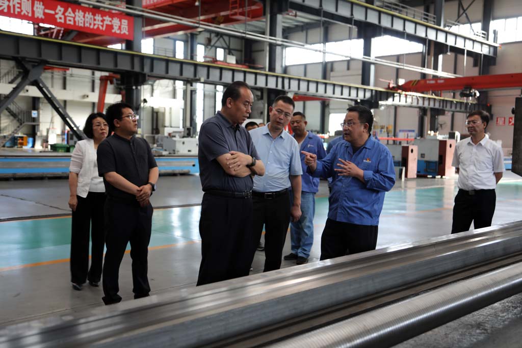 牛成喆一行深入工業(yè)園加工車間和青重裝配車間現(xiàn)場,一邊了解產(chǎn)品,一邊詢問企業(yè)生產(chǎn)經(jīng)營等情況。蔣保權(quán)向牛成喆一行介紹了企業(yè)重點產(chǎn)品的性能、用途等特點以及企業(yè)在科技創(chuàng)新和產(chǎn)品研發(fā)方面取得的成果。