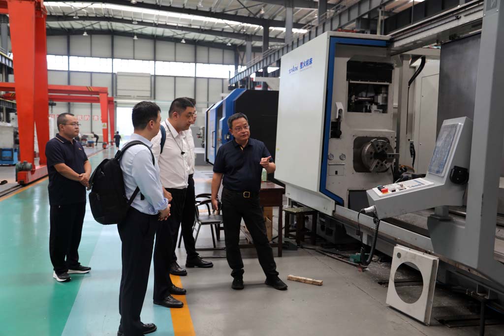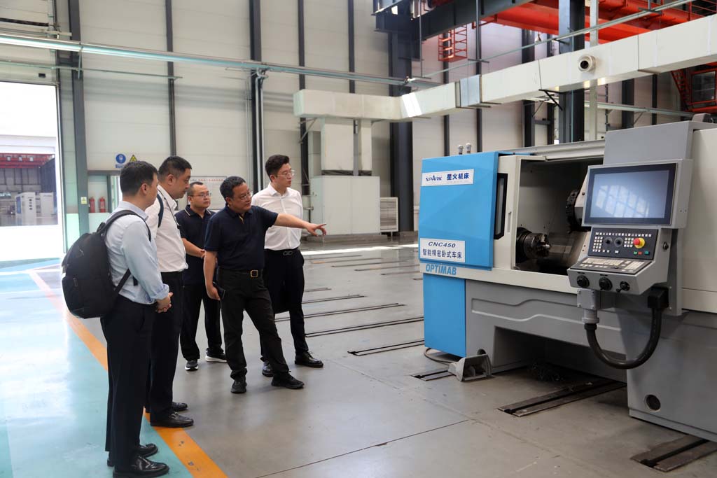 在星火工業(yè)園,蔣保權(quán)對喬瑞一行的到訪表示熱烈歡迎并親切交流。隨后,蔣保權(quán)陪同喬瑞一行參觀了企業(yè)加工車間、青重車間以及數(shù)控裝配車間等生產(chǎn)現(xiàn)場,向喬瑞一行介紹了五軸聯(lián)動車床、重型臥式車床、軋輥磨床等產(chǎn)品的相關(guān)情況。