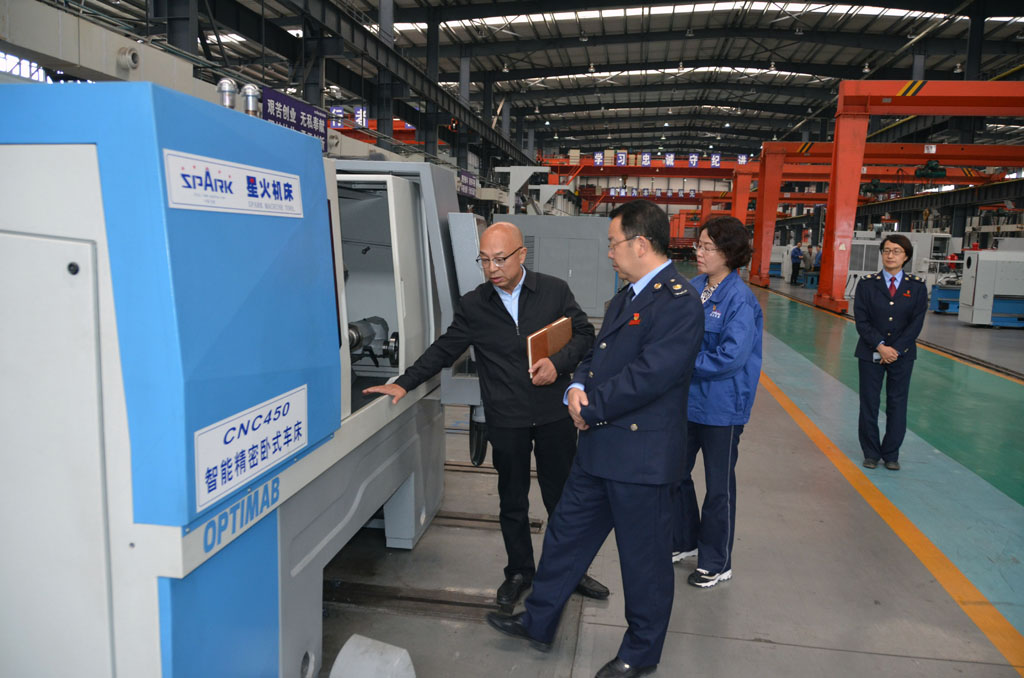 調(diào)研組一行在公司領(lǐng)導(dǎo)陪同下,先后參觀了工業(yè)園數(shù)控機(jī)床裝配現(xiàn)場、重型機(jī)床裝配現(xiàn)場和公司展廳,觀看了公司研發(fā)生產(chǎn)的數(shù)控精密車床、重型臥式車床和青重公司生產(chǎn)的車輪車床等各類產(chǎn)品。