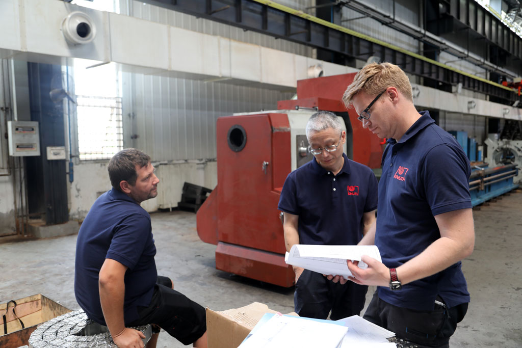 9月11日下午,羅馬尼亞客商一行2人在德國克努特公司銷售經(jīng)理的陪同下來到甘肅星火智能數(shù)控機床有限公司驗收兩臺CW61160/8m臥式車床產(chǎn)品。甘肅星火智能數(shù)控機床有限公司銷售部副部長高瑞東及相關(guān)技術(shù)人員接待客商一行并陪同驗收產(chǎn)品。