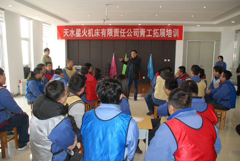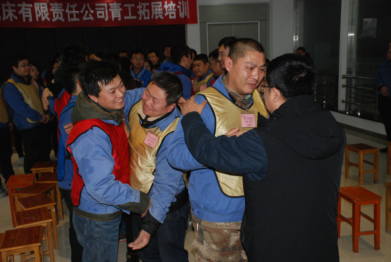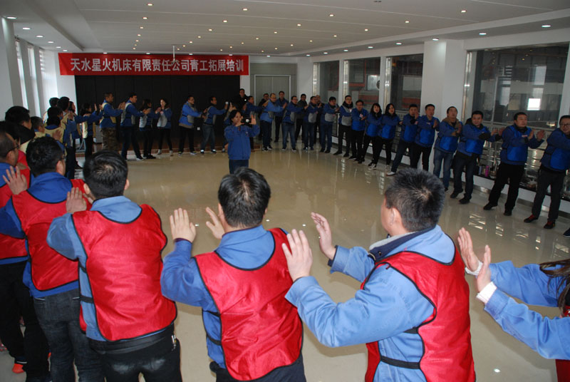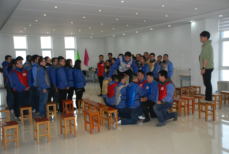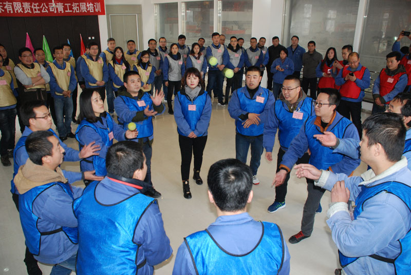 1月12日,銷售部會(huì)議室人聲鼎沸,從早上8點(diǎn)到晚上6點(diǎn)20分,一會(huì)兒響起高昂有力的口號(hào)聲,一會(huì)兒響起整齊響亮的吶喊聲。公司邀請(qǐng)的蘭州毅智拓展訓(xùn)練營(yíng)的兩位老師正在對(duì)公司50名青工進(jìn)行拓展訓(xùn)練。集團(tuán)公司黨委書記、董事長(zhǎng)蔣保權(quán),黨委副書記、副總經(jīng)理、工會(huì)主席蔣俊放棄休息,前來觀看訓(xùn)練。公司總工程師劉強(qiáng),鑄木分廠廠長(zhǎng)張巨宏作為觀察員也早早來到現(xiàn)場(chǎng),進(jìn)入工作狀態(tài)。工會(huì)副主席蔡建欣集合隊(duì)員點(diǎn)名之后,交給培訓(xùn)老師阿杜和海濤帶領(lǐng),開始了緊張有序的訓(xùn)練。